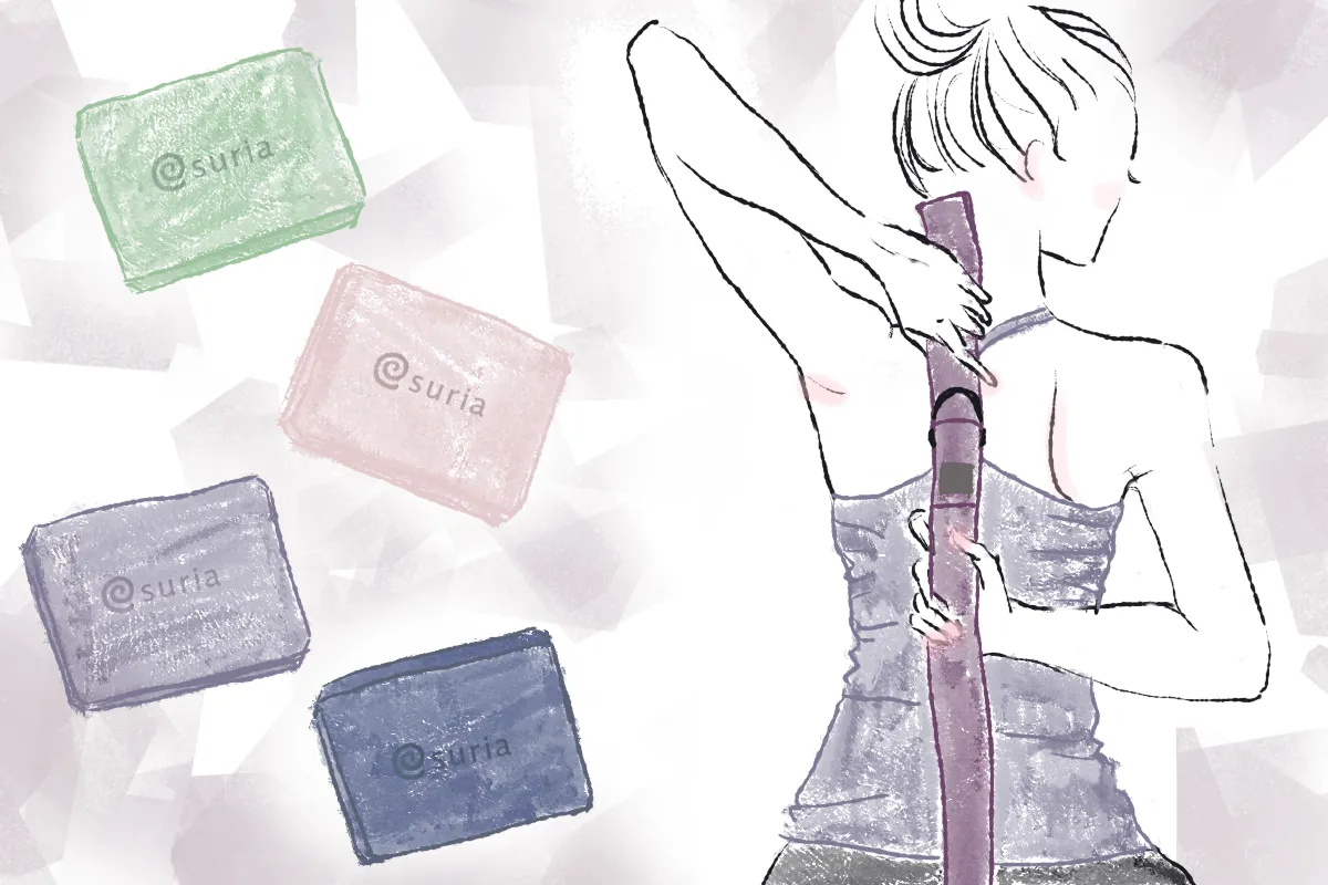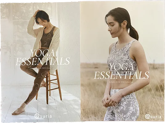 気軽にヨガマットを運ぶためのストラップが欲しいというリクエストに応え、太陽礼拝をプリントしたオリジナルストラップをリリース。続いてsuriaらしい色の起源でもあるアーシーな4色のヨガマットを発売。suriaのオリジナルはグッズからのスタートとなりました。